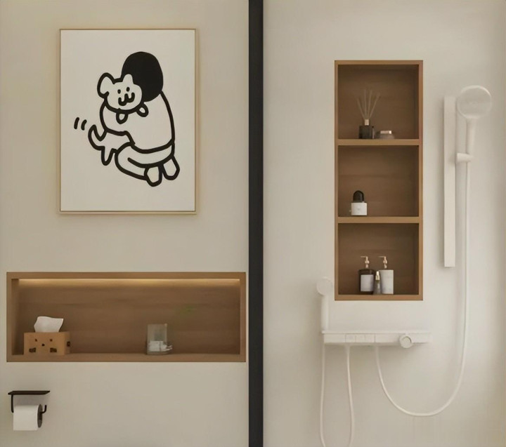 壁龛很好理解,它是在墙壁上打一个收纳空间,专门用来收纳各种洗漱物品。