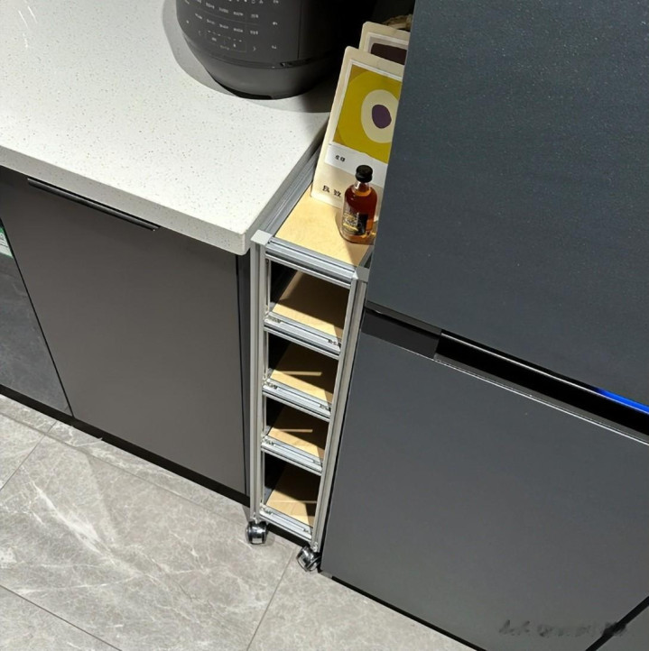 我家厨房空间是很大,可橱柜、冰箱等等装完后,中间有一条将近20公分的缝隙,