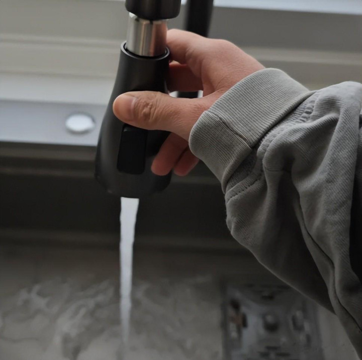 而有了抽拉水龙头之后,每次用完之后用把水龙头抽拉出来,打开花洒模式立马就能清洗干净。