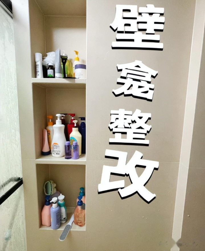 不用买置物架,也不用不放东西,媳妇就告诉师傅,卫生间直接做壁龛,收纳空间翻倍。