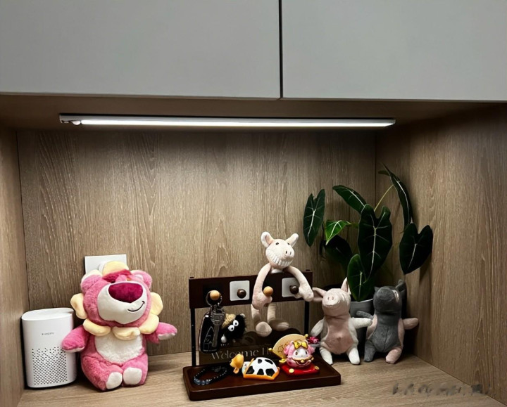 当你进屋之后,感应灯会自动亮起来,温和的光线不刺激,人走就自动熄灭,真爽。